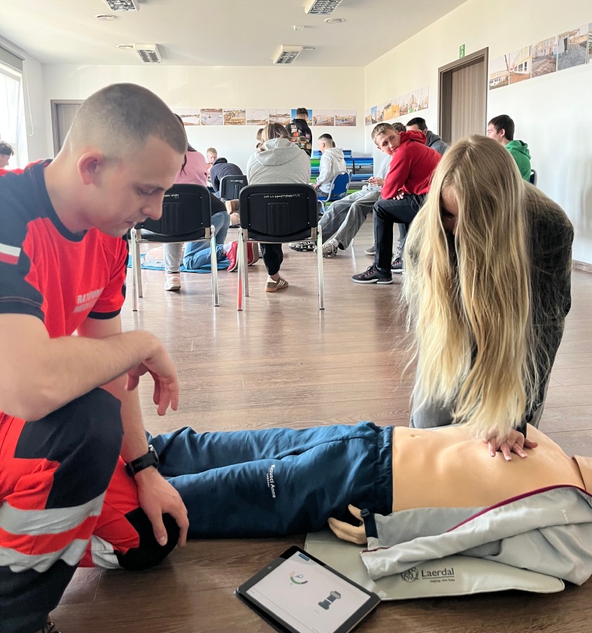 Podczas warsztatów uczniowie mieli okazję przede wszystkim ćwiczyć resuscytację krążeniowo-oddechową (RKO) oraz poznawać zasady stosowania AED. Pracując w grupach, mogli samodzielnie przećwiczyć techniki ratownicze, zadawać pytania i rozmawiać o sytuacjach, w których szybka i właściwa reakcja może uratować komuś życie. Duża ilość czasu przeznaczona na część praktyczną sprawiła, że zajęcia były wyjątkowo owocne i angażujące.